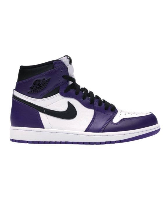 Buty Air Jordan 1 High zadebiutowały jako pierwsze sygnowane buty sportowe opracowane przez Nike dla Michaela Jordana. Zaprojektowane przez Petera Moore'a sportowe tenisówki do koszykówki miały prosty projekt inspirowany Nike Dunk. Air Jordan 1 Retro High Court Purple White składają się z białej skórzanej cholewki z nakładkami w kolorze Court Purple i czarnymi detalami. Klasyczne logo Jordan Wings na kołnierzu i tkane metki Nike na języku to ukłon w stronę projektu OG 1985. Biało fioletowa podeszwa Air stanowi wykończenie.